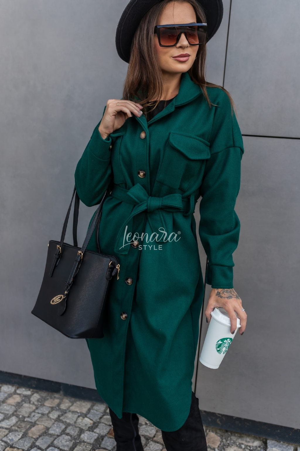 Elegantní kabát košilového střihu s páskem na zavázání, který krásně zvýrazní postavu. Zapínání je na knoflíky po celé délce a nechybí ani praktické kapsy na hrudi s klopami. Díky univerzálnímu střihu se hodí jak k elegantním outfitům, tak i k ležérnímu každodennímu nošení. Stylový kousek, který dodá outfitu šmrnc a nadčasový vzhled.