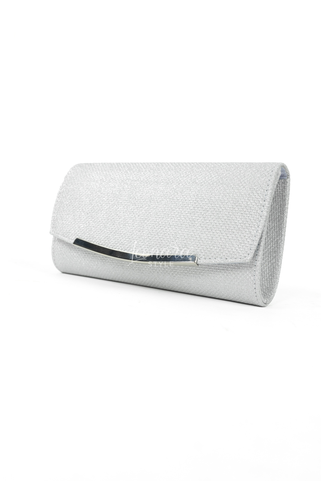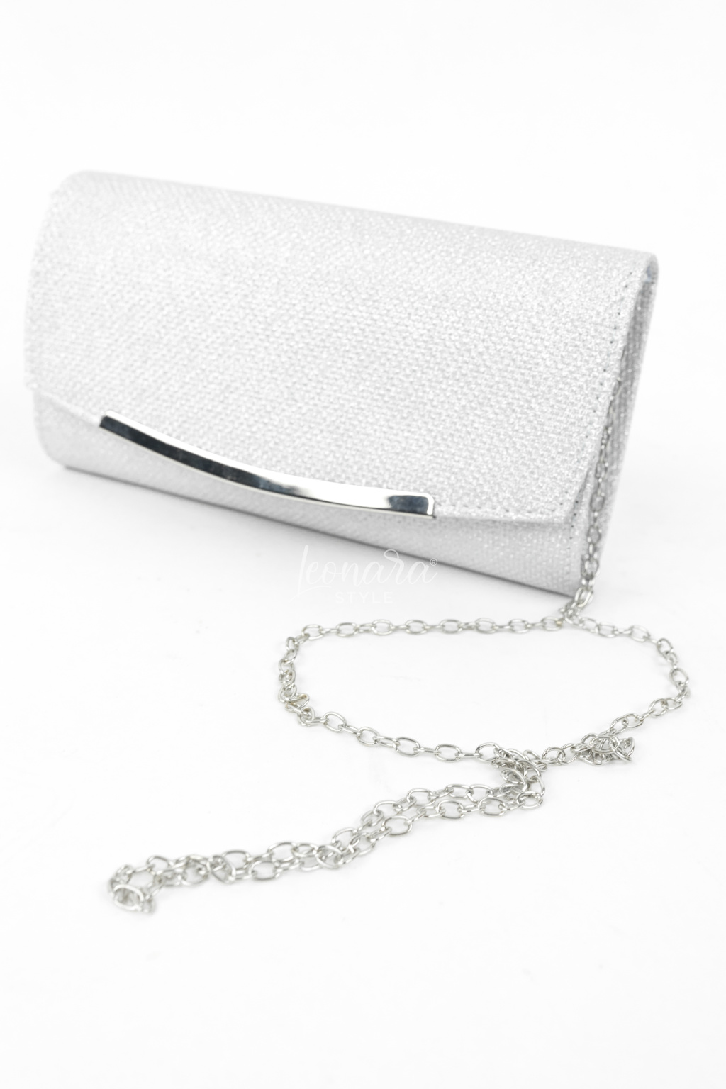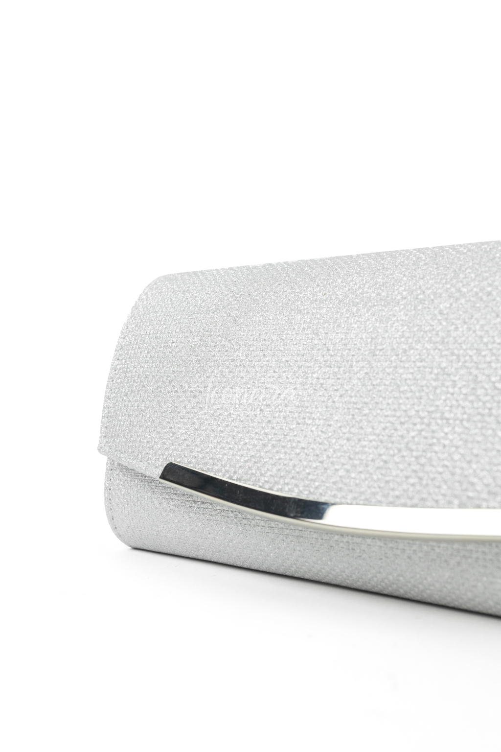 Krásné elegantní stříbrné psaníčko se třpytivým povrchem je zdobené jemným detailem. Zapínání je na magnetický druk. Má odepínací řetízek, díky kterému jej můžete nosit v ruce i přes rameno. Uvnitř se nachází jedna praktická kapsa na drobnosti. Skvěle se hodí na společenské události, jako jsou plesy, svatby či večírky.