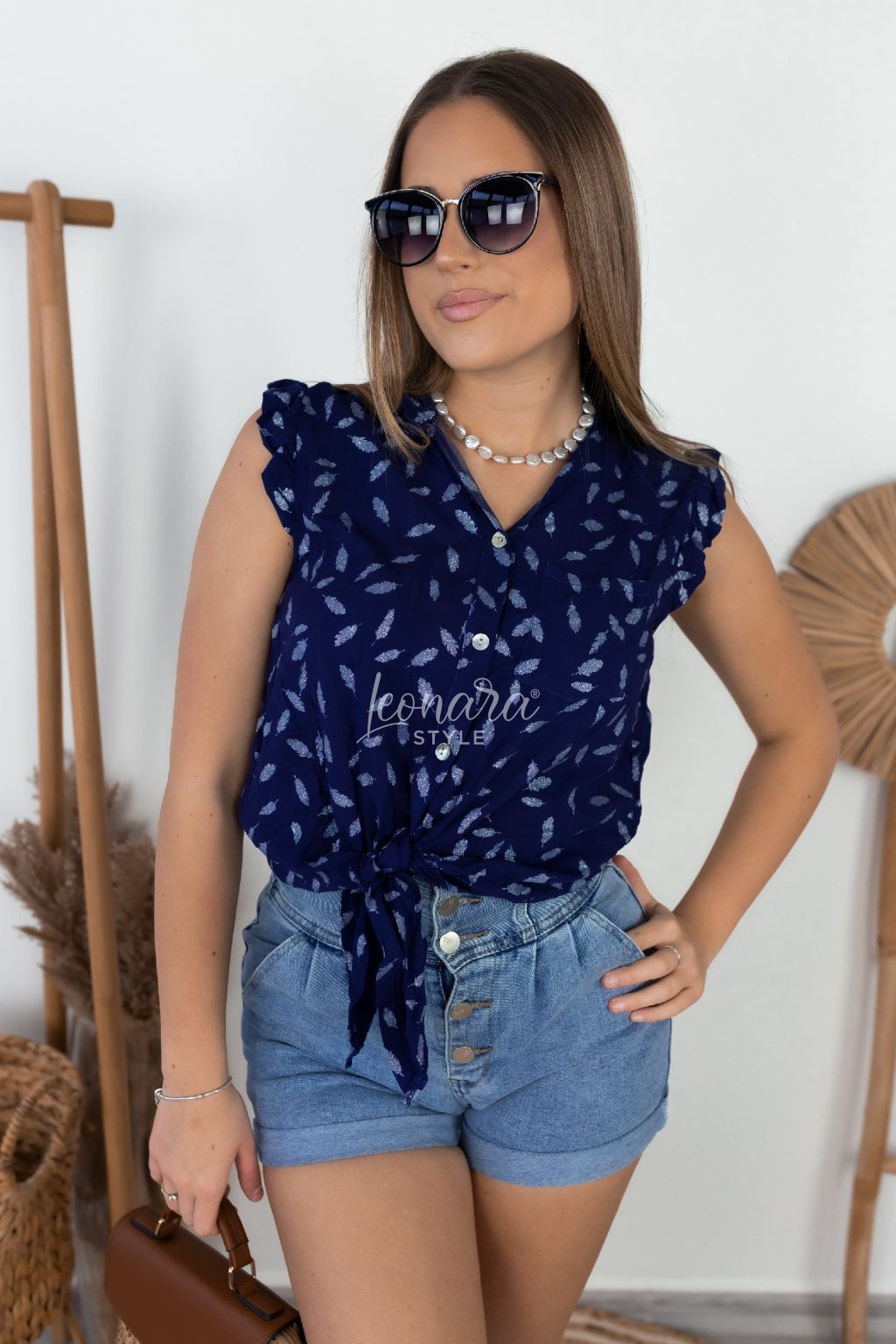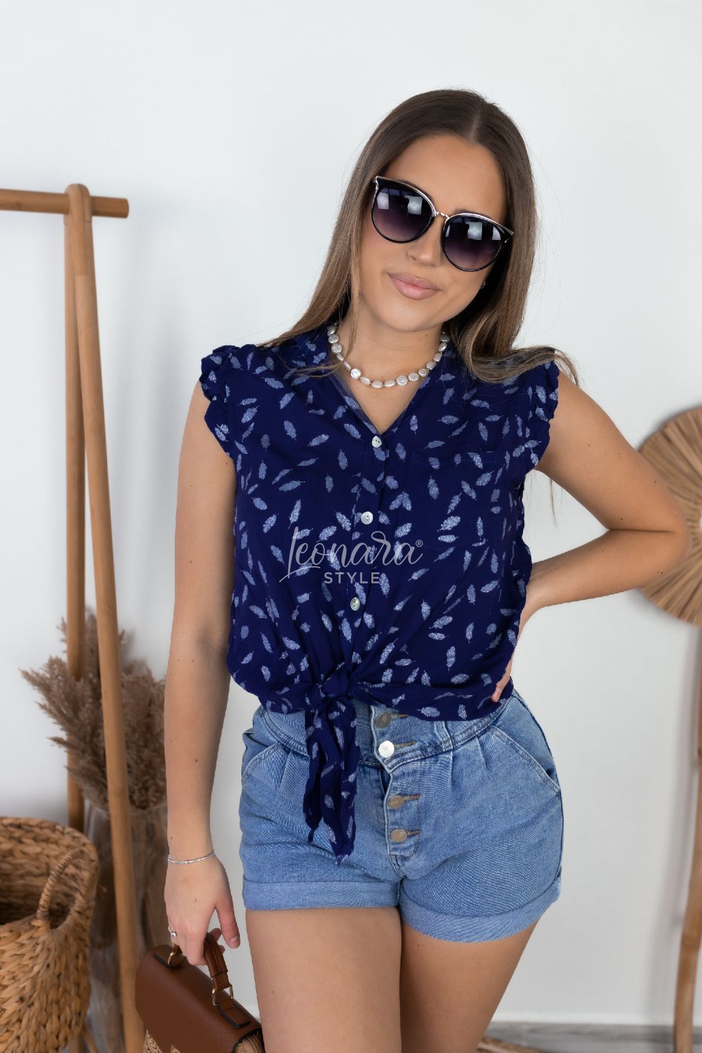 Tmavě modrá košile s peříčky REINA