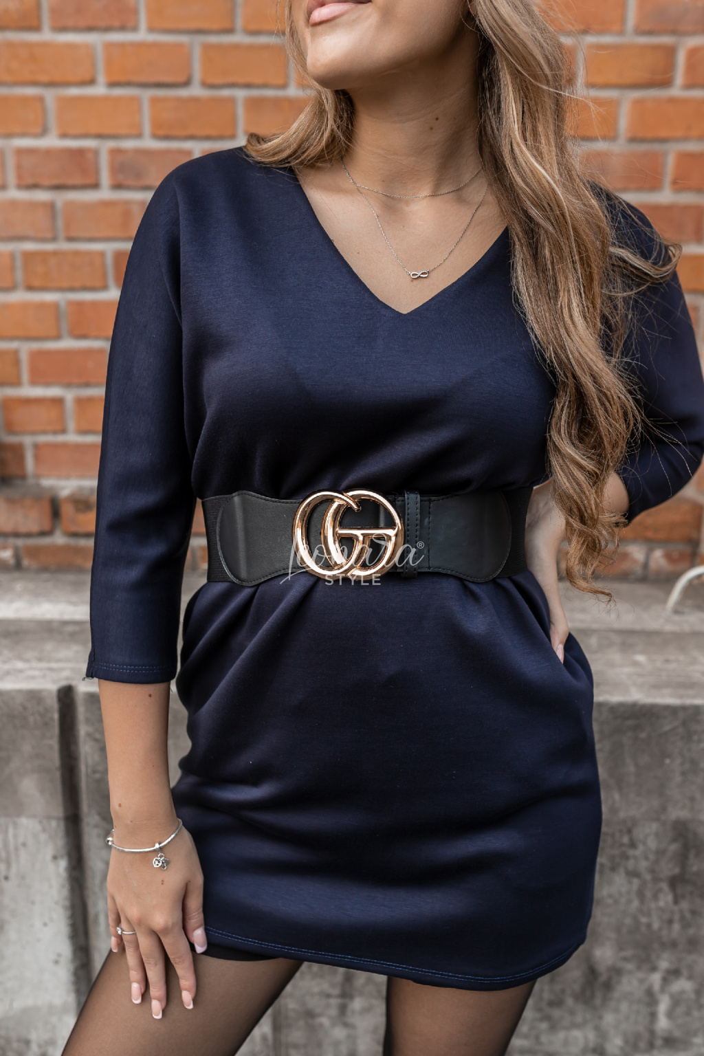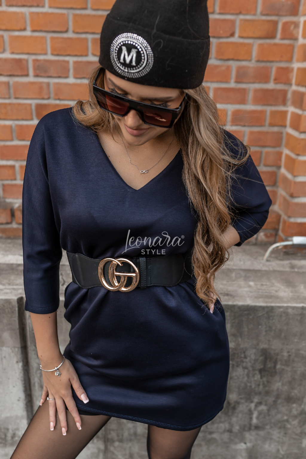 Tmavě modrá maselková tunika s výstřihem BRITNEY