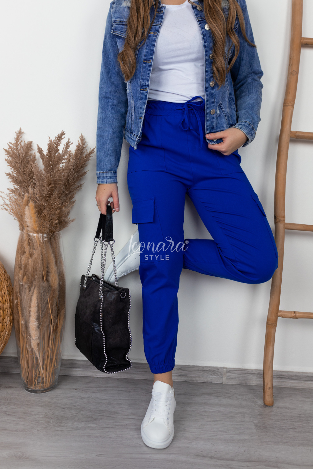 Jednobarevné kalhoty z velmi příjemného a elastického materiálu, který zajišťuje maximální pohodlí. V pase mají pružnou gumu a šňůrku na zavazování pro lepší přizpůsobení postavě. Nechybí klasické kapsy ani kapsy po stranách. Nohavice jsou zakončeny gumou, což dodává kalhotám moderní vzhled. Skvěle se hodí na běžné nošení, do města i na volný čas.