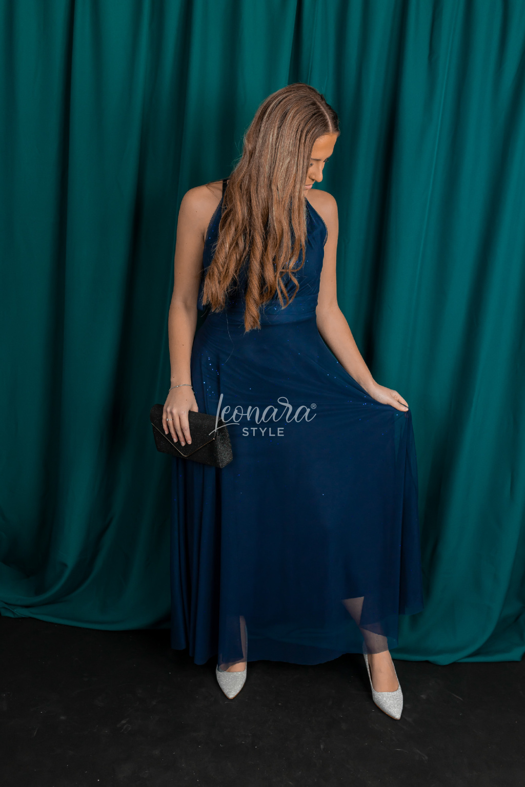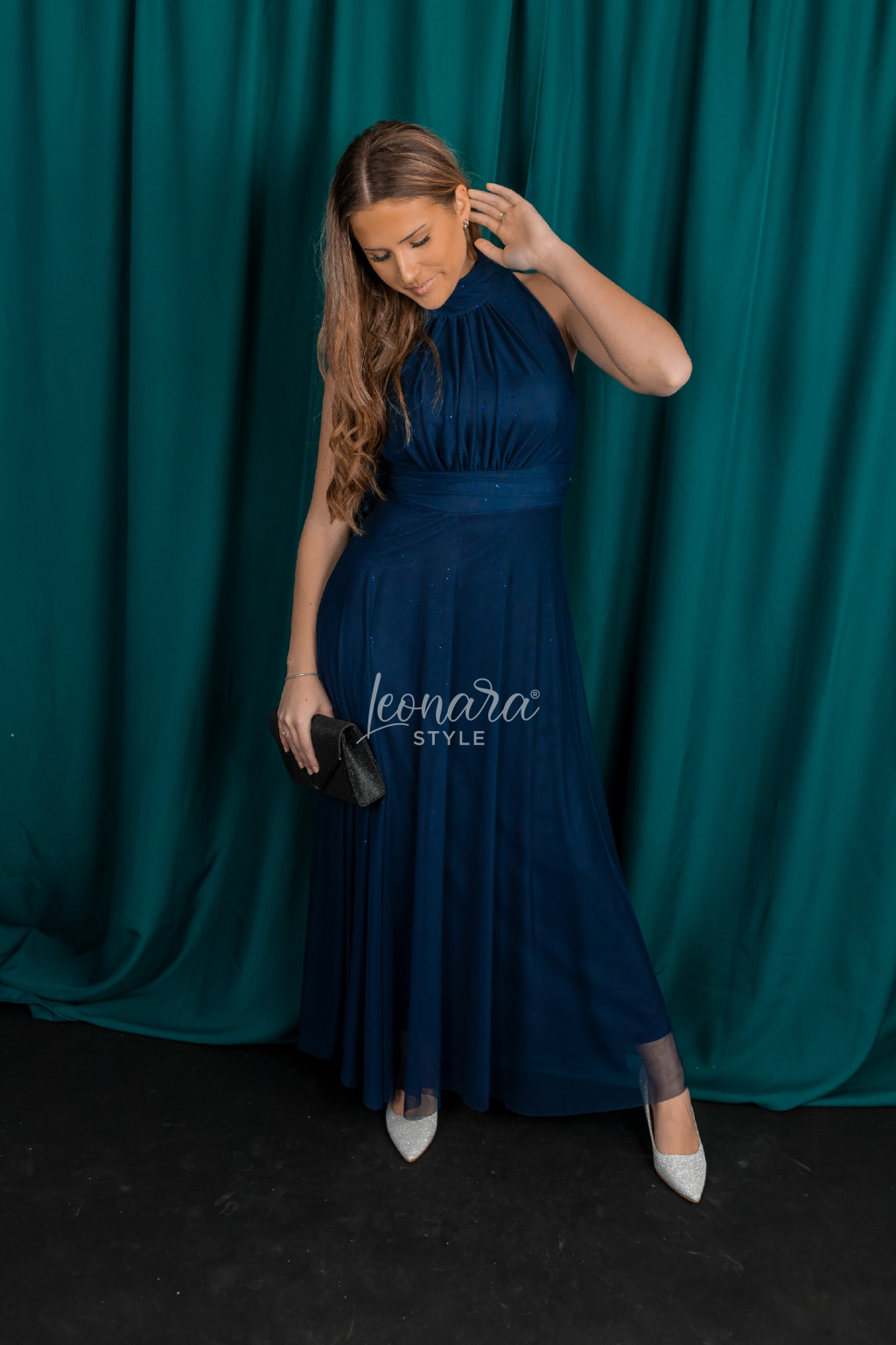 Tyto společenské šaty jsou vyrobeny z velmi příjemného tylového materiálu, který je jemně posetý třpytkami. Šaty mají prsní vycpávky pro krásné tvarování postavy. Šaty mají jednoduchý rolákový střih a zapínání na knoflíky v zadní části u krku. Sukně je doplněna spodničkou, díky které má šatům krásný objem a splývavost. V pase se šaty vzadu zavazují na mašli, která je pevně přišitá a není sundatelná. Tento model je ideální volbou pro všechny společenské akce, plesy, oslavy i slavnostní večery.
