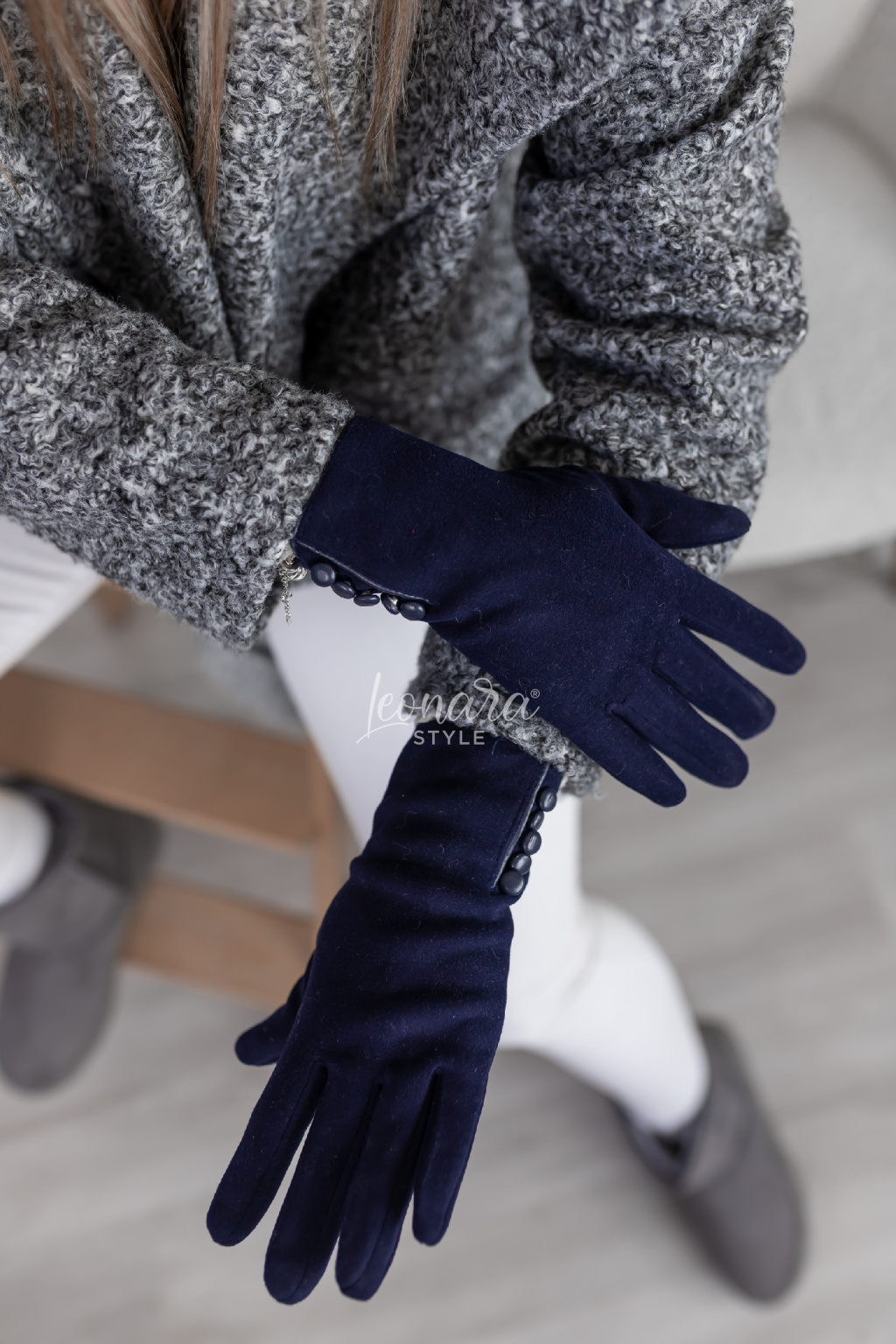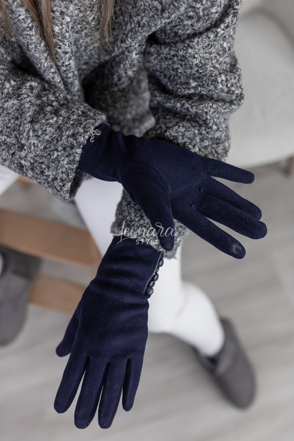 Elegantní semišové rukavice s jemnými cvočky na zápěstí působí stylově a žensky. Díky pružnému materiálu se příjemně přizpůsobí ruce a zajistí pohodlí při nošení. Na ukazováčku mají decentní květinový detail umožňující ovládání dotykového displeje. Ideální doplněk pro chladnější dny.