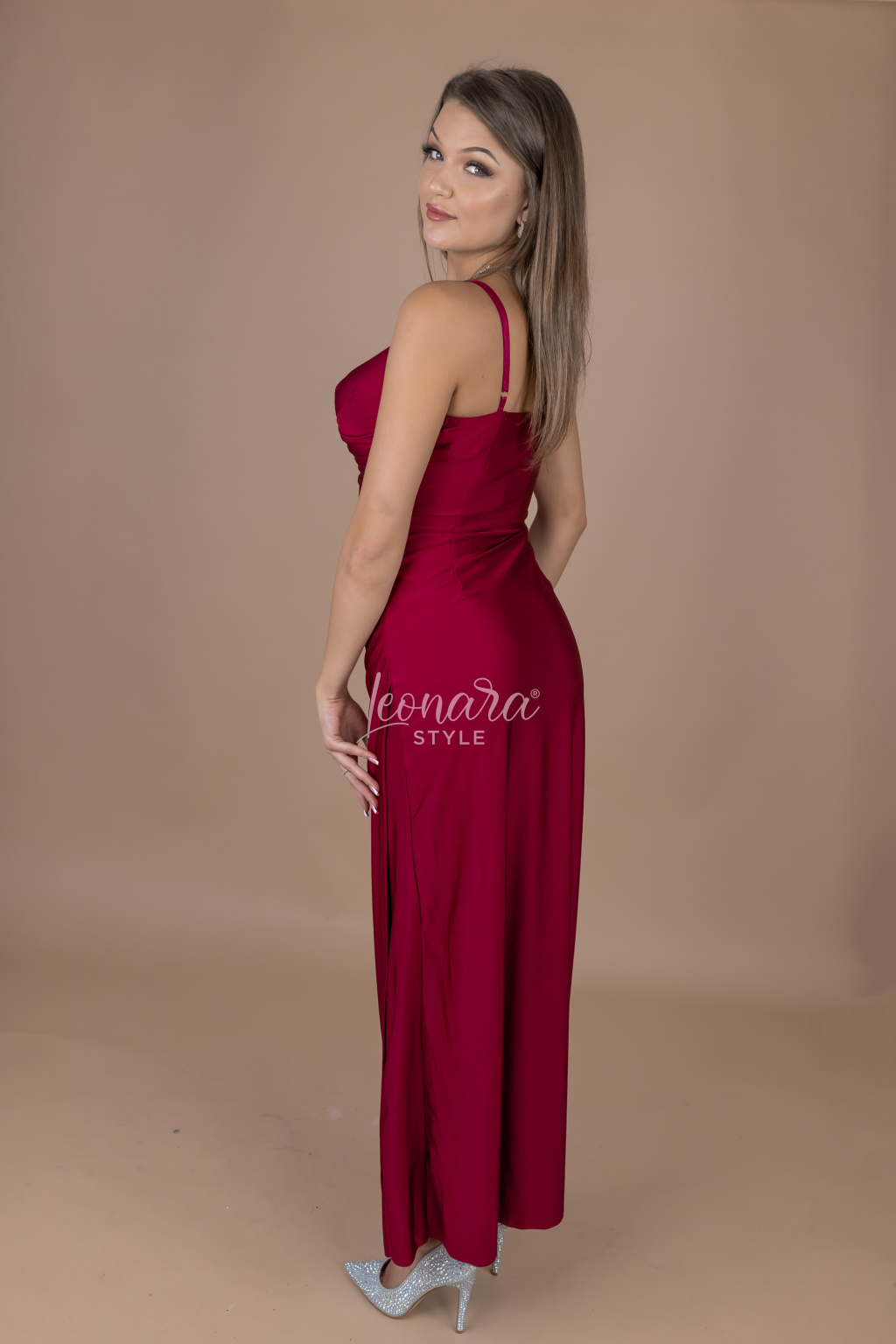 Vínové saténové šaty s rozparkem BRIANNA